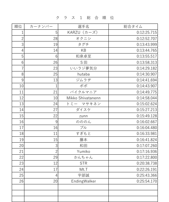 クラス1、クラス2とも4連覇中だったKARZUさんが、見事両クラスとも優勝!